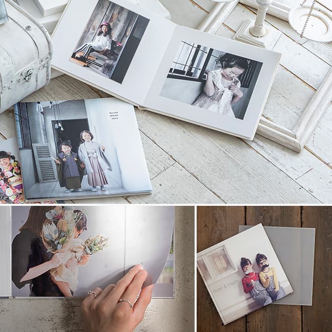 ボリュームのある内容ながらスマートな薄さと滑らかな質感が人気のフォトアルバム。できるだけ多くの写真点数をプリントしたい方はこちらがお薦め。兄弟姉妹で一冊、前回撮影と合わせて一冊などにも最適です。